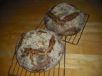 The loaves had a dramatic ovenspring, showing that I ought to have scored them deeper. Or perhaps a cross-hatch method.