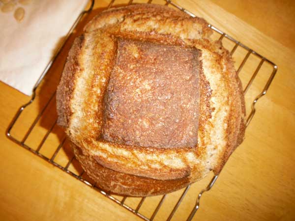 Bottom of my loaf, with the ground up birdseed-grade Safflower seeds embedded in crust