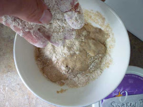 | I refresh the starter with fresh water and flour and stir it with a finger |